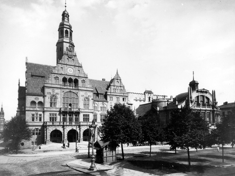 Im Zweiten Weltkrieg blieb das Rathaus bis auf den Turm unzerstört. Maßgeblich von dem Stadtbaurat Ritscher geplant, ist der Baustil eine Rezeption romanischer, gotischer und Renaissance-zeitlicher Architektur.